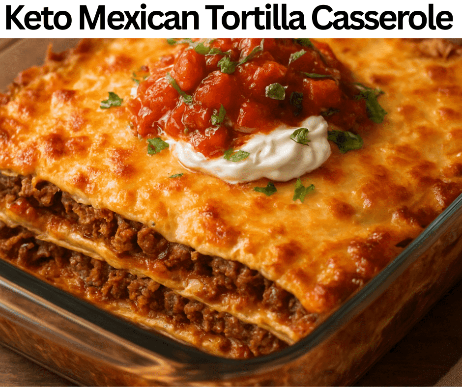 This Keto Mexican Tortilla Casserole is the ideal low-carb comfort food when you’re seeking strong tastes without going overboard with your diet. Melted cheese, keto tortillas, and seasoned ground beef come together in this dish to create a decadent yet keto layered bake. There are the proper amounts of heat, creaminess, and Mexican taste in each bite of this casserole. This Keto Mexican Tortilla Casserole is perfect for people on a keto or low-carb diet because it uses keto tortillas instead of standard casseroles. It is simple to add your preferred toppings, such as jalapenos, sour cream, & avocados. Savor the flavors of Mexican food in a keto-friendly and healthy way.